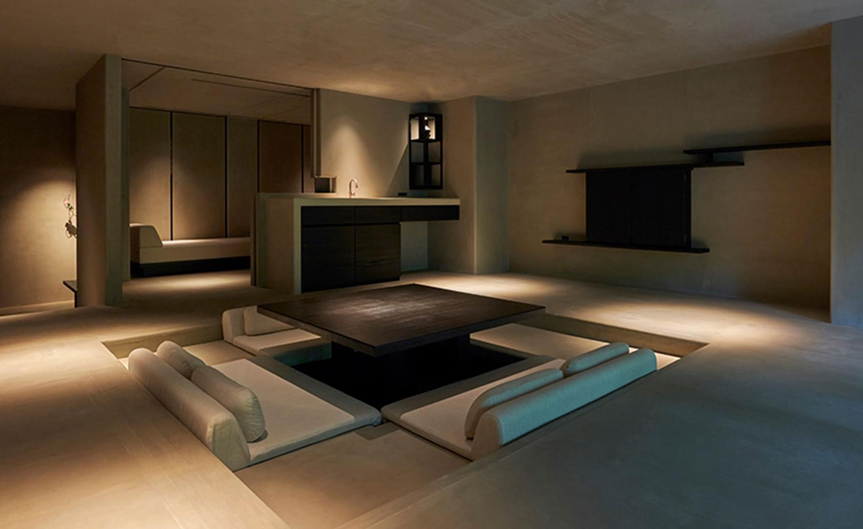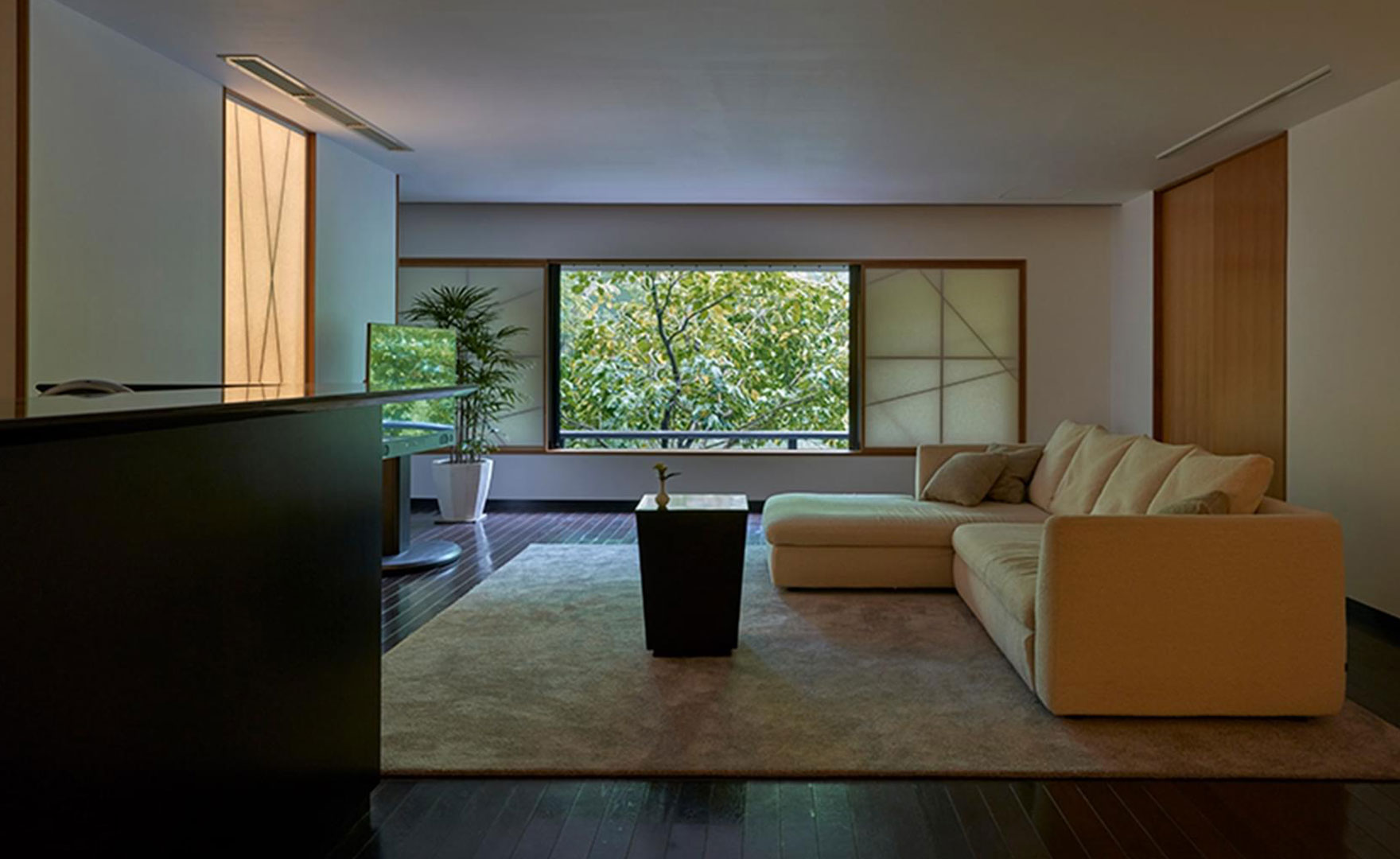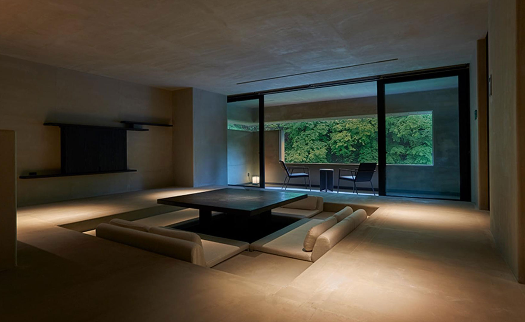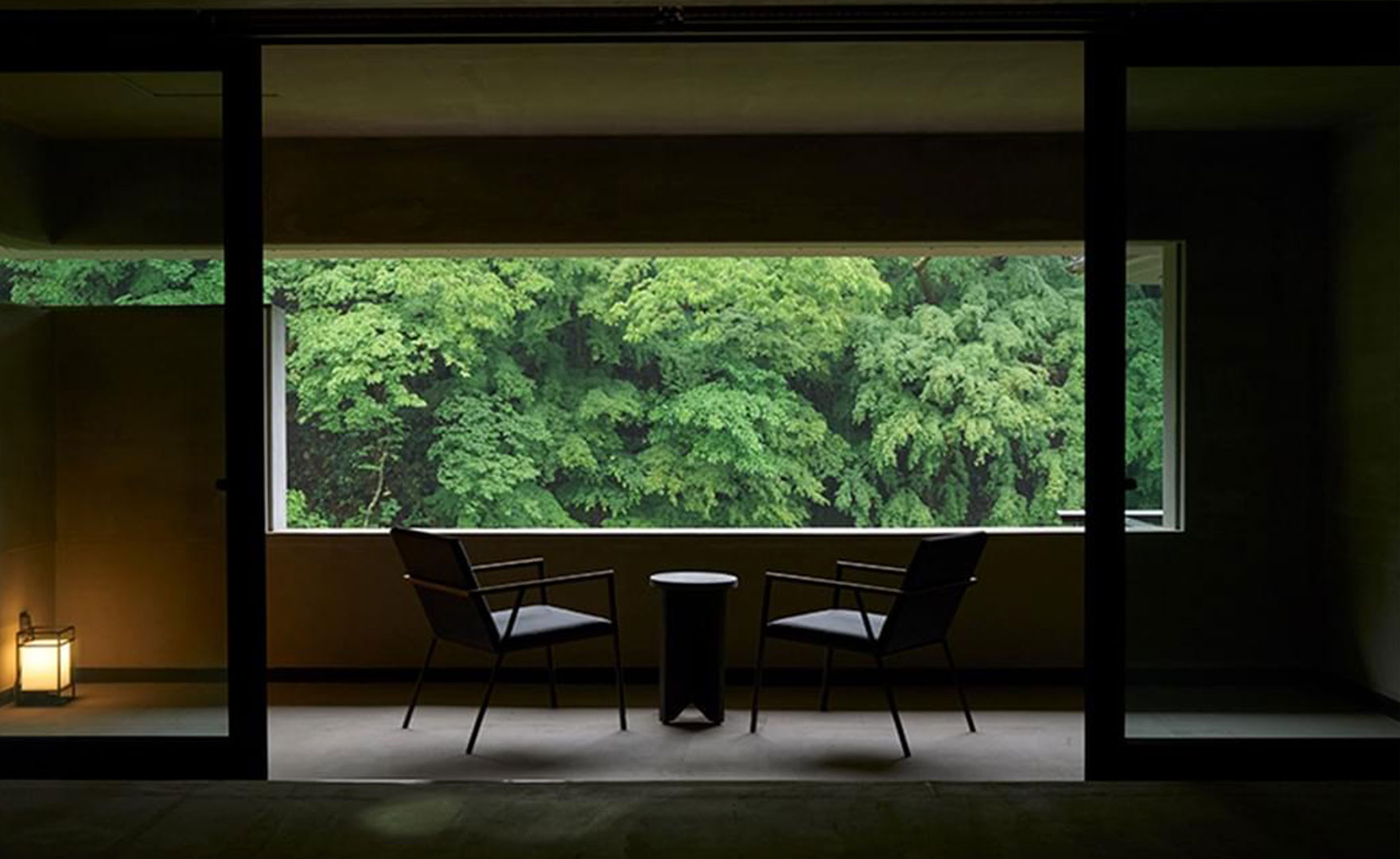 日本古来の建築美を、現代の視点で再構築したジュニアスイート。陰影礼賛とした静寂な空間と、備え付けの温泉が洗練された癒しのひとときを作り出します。
