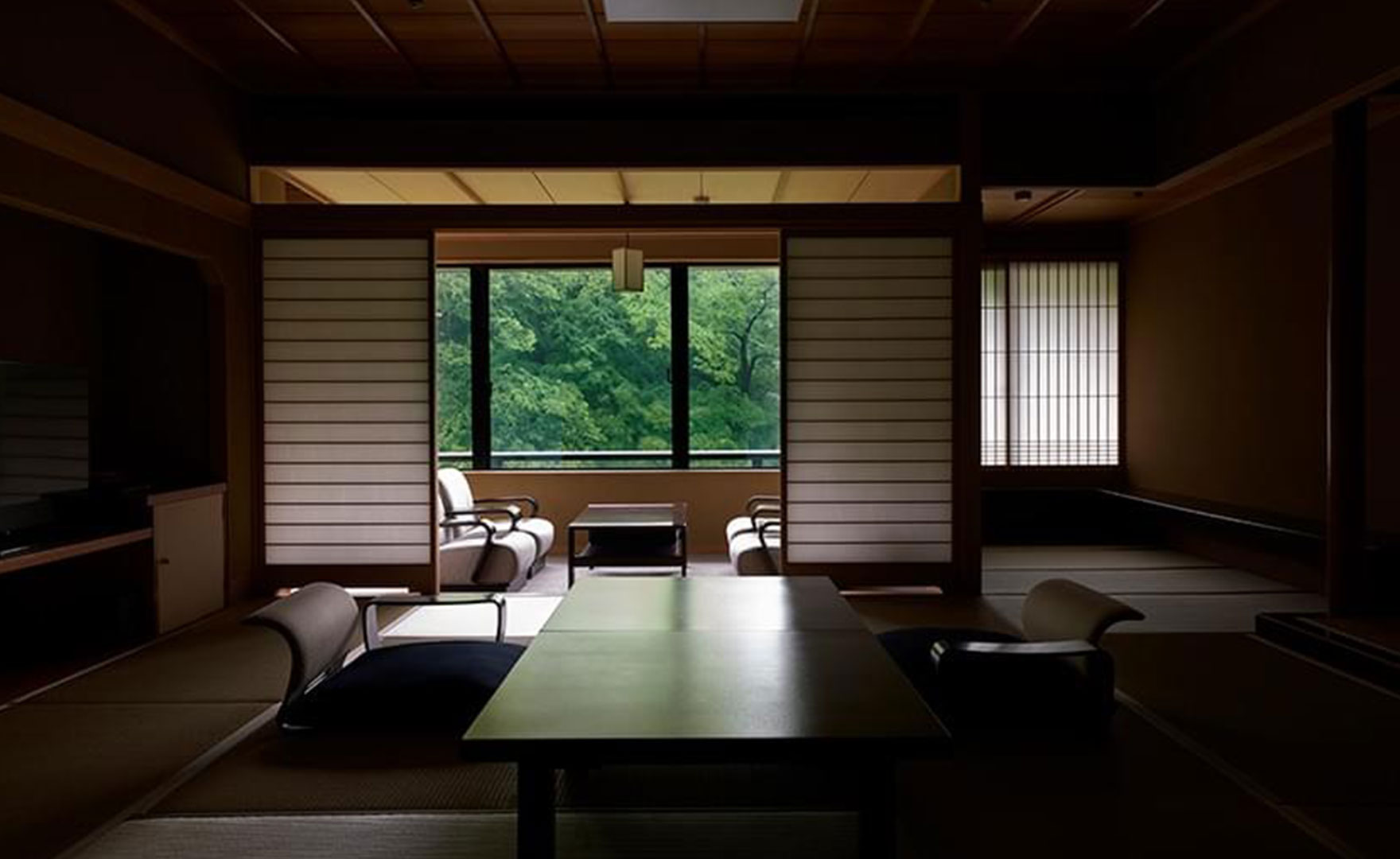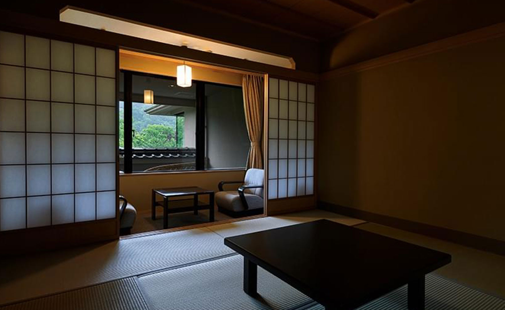 次の間付き和室には、基本となる和室にミニマルなお休み用の一部屋が加わります。ご友人同士や二世帯でのご滞在など、広々とした空間で気兼ねない旅の時間をお楽しみいただけます。