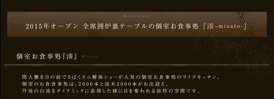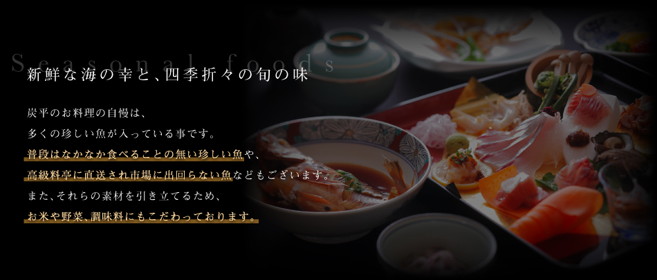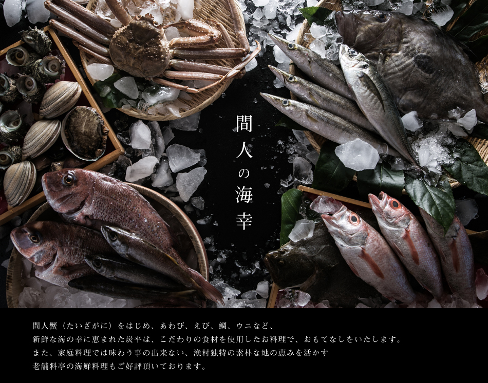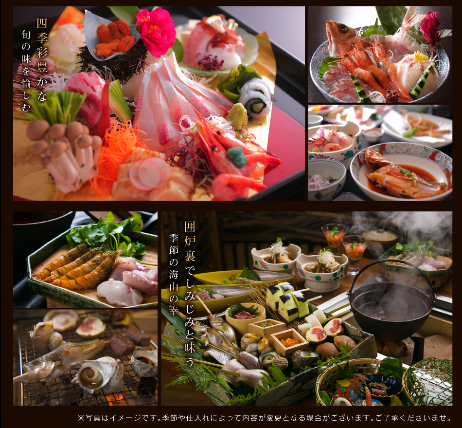 窓に広がる夕日と海 美食を奏で150有余年 間人温泉 炭平 ■お料理