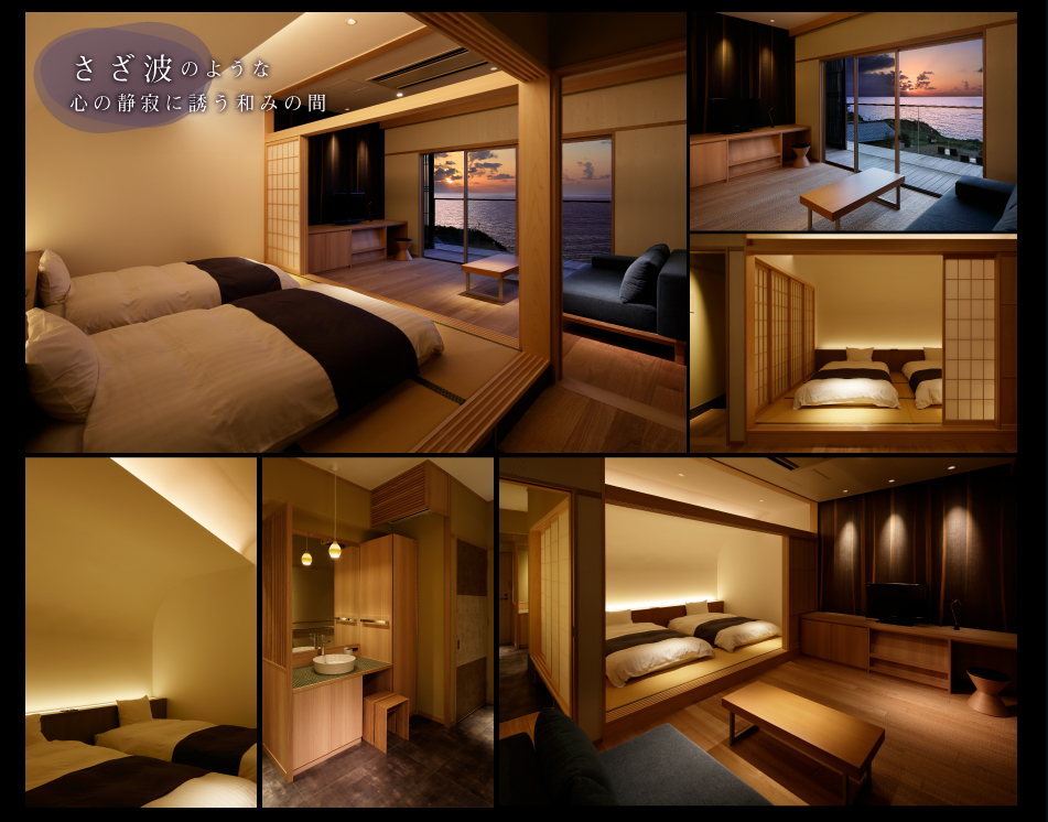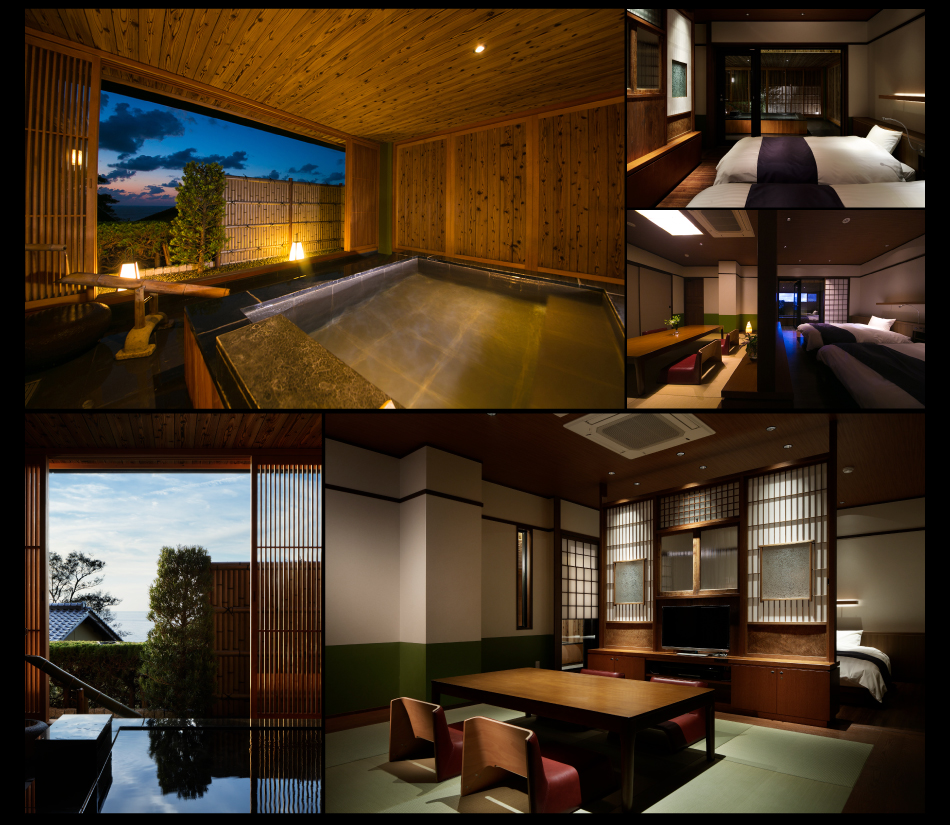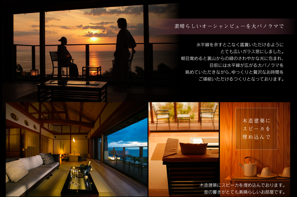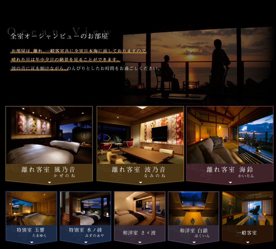 窓に広がる夕日と海 美食を奏で150有余年 間人温泉 炭平 ■お部屋