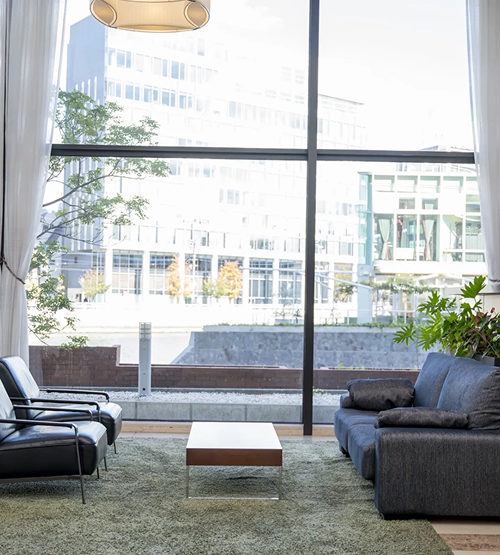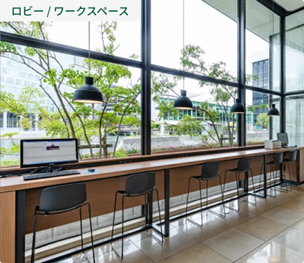 ロビーも広々としたスペースとなっておりますので、快適にお過ごしいただけます。ワークスペースもございます。