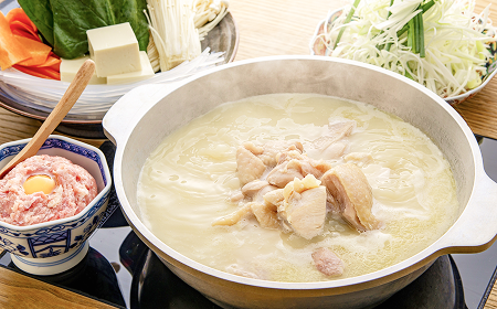 鶏の旨みたっぷりのスープが絶品の水炊きを楽しむ。