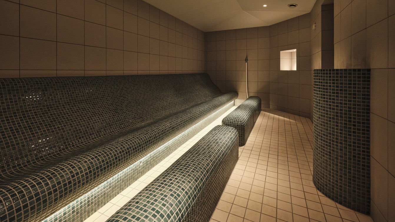 壁・床・ベンチからの熱で穏やかに温められた蒸気が広がるスチームサウナ。スチームにはアロマが注入され、アロマテラピーも同時に楽しめます。 |