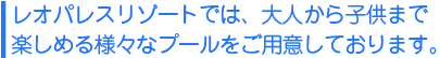 レオパレスリゾートでは、大人から子供まで楽しめる様々なプールをご用意しております。ゆったりとした南国のリゾートプールで極上の休日をお過ごしください。
