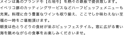 | 夕食 | 鉄板焼きメイン料理&ハーフビュッフェ |