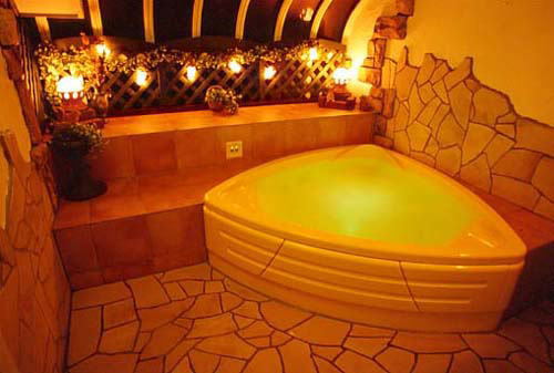 森林浴や雪見風呂、あるいは無数の星が輝く空の下で、思いきり手足を伸ばして快適で プライベートなリラクゼーションを満喫してください。その他、7色の光が、素敵なバスタイムを演 出するジャクジータイプのガーデン露天風呂もございます。もちろん3ヶ所5つのお風呂は、ご滞在中24時間いつでも御利用可能です。
