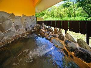 源泉かけ流しの貸切岩露天風呂