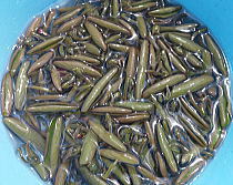 われてひょろんとしたジュンサイの芽を小さな箱舟に乗ってひとつづつ摘んでいきます。摘んだジュンサイはお土産としてお持ち帰りいただけます。さっと茹で
