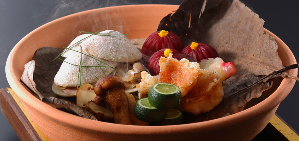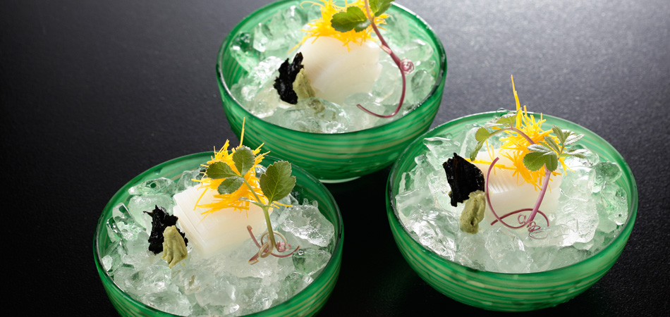 天童荘懐石では、この鰻の蒲焼きをはじめ、山形ならではの旬の素材を厳選吟味し、月替りのお懐石としてお出しさせていただいております。二十四節気にちなんだ細やかな季節の移り変わりを感じる演出、そして器にも季節を感じていただけます。世界無形文化遺産、美しい日本料理をごゆっくりとご堪能くださいませ。