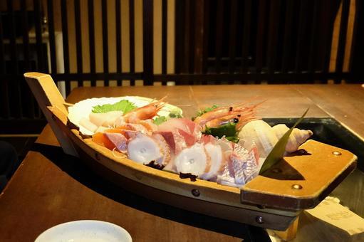 | 伊豆で獲れた新鮮な魚を舟盛りに!アジ、カツオ、イサキ、トビウオ、マンボウなど定番のものから珍味までその季節の旬な刺身を盛り合わせております。地元のおいしい刺身を堪能してください。