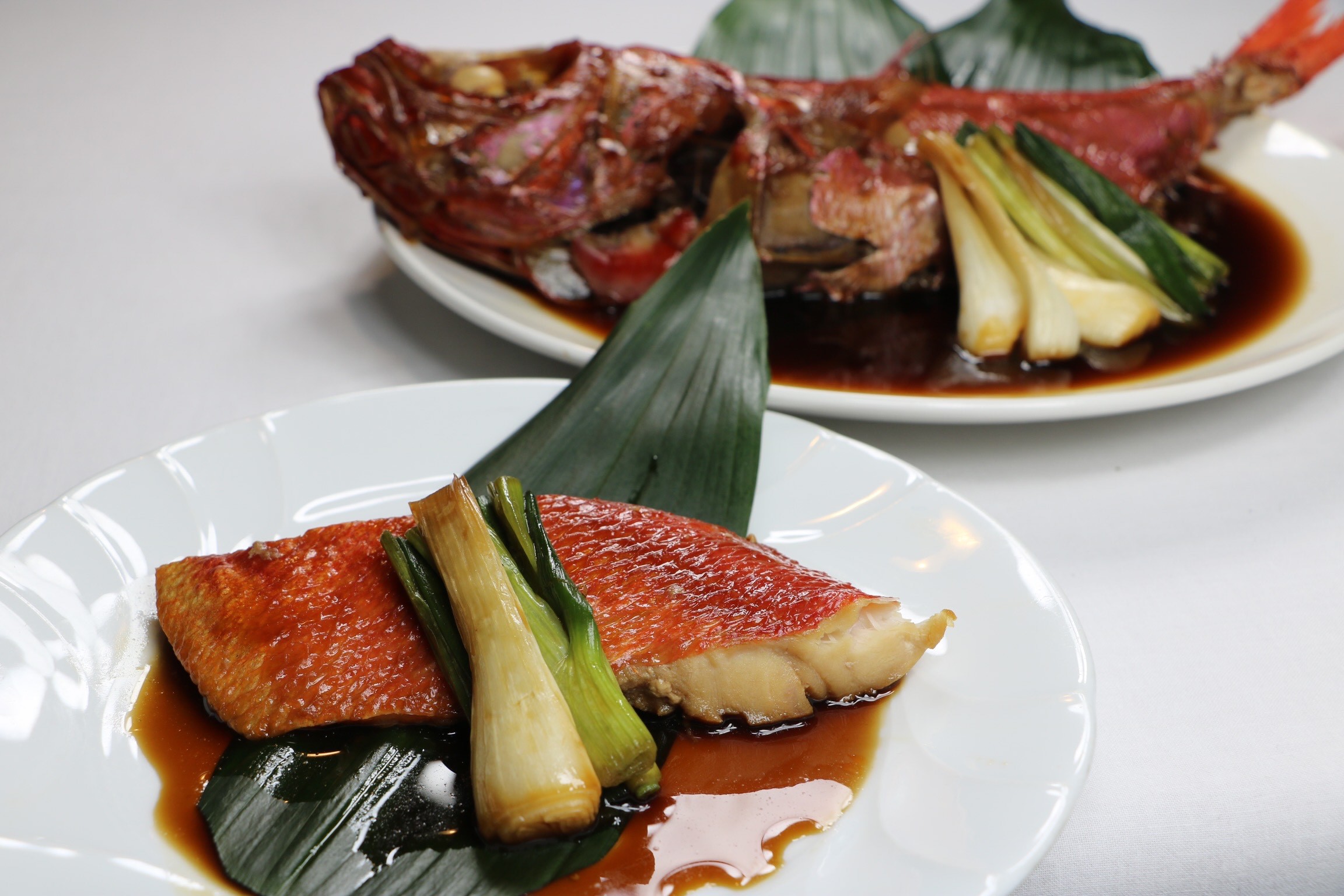| 稲取産の金目鯛を甘辛いタレで煮込んだ人気No.1の煮付けです。稲取産の金目鯛は脂の乗りが抜群です。タレとからめて口の中でとろける絶品の金目鯛の煮付けをご提供します。 |