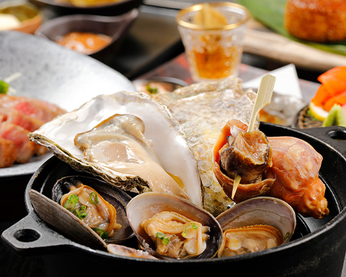 厚岸産牡蠣・アサリ・つぶのガンガン焼き