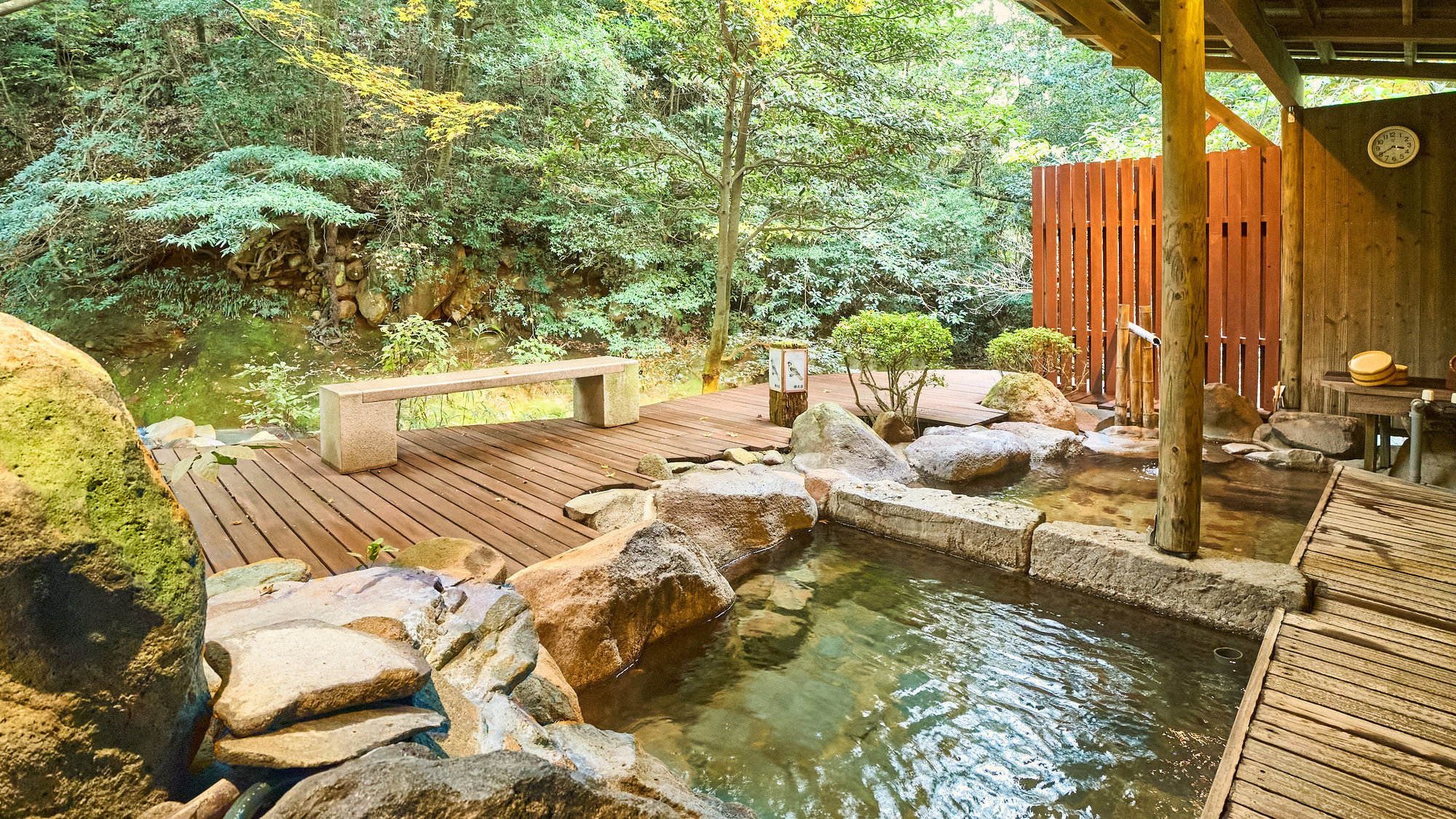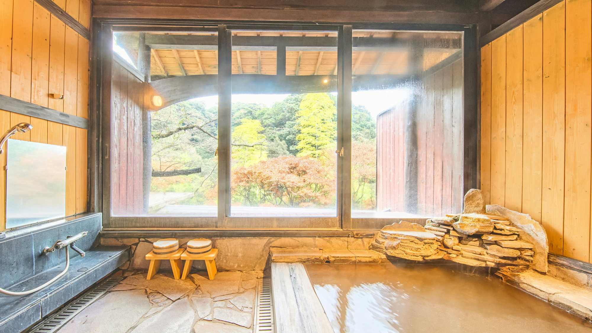 掛け流し温泉ならではの『湯』をご堪能下さい。 大きな窓一面に鮮やかな緑の木々がご覧いただける大浴場・川のせせらぎが聞こえる露天風呂・無料で貸切ができる貸切露天風呂がございます。四季折々の彩りを眺めながら至福のひとときをお過ごしください。