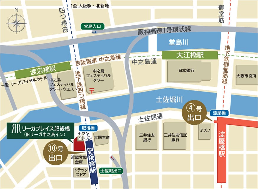 その後、「福島6」交差点を右折、「京町堀1西」交差点を左折、「京町堀1」交差点を左折し、約500m。