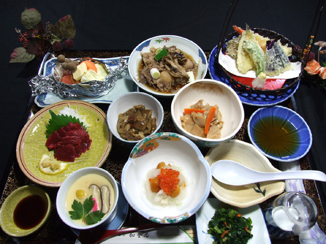 四季折々郷土料理プラン、24時間滞在プランのお夕食例です。