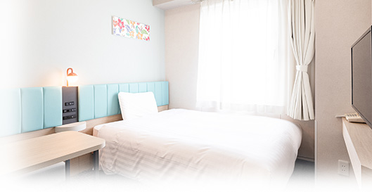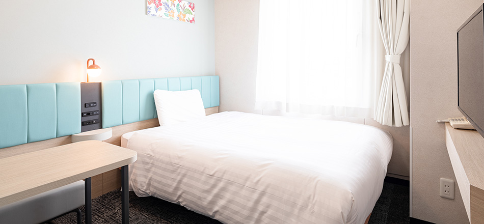 1名でのご利用はもちろん、ご家族やカップルのお客様にもおすすめです。ダブルサイズのベッドを