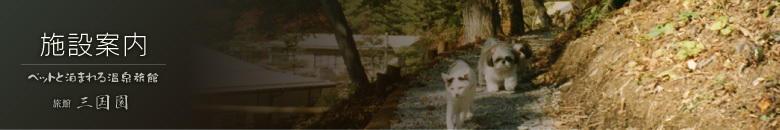 三国園は開館当初よりペットを家族の一員としてお迎えしております。ペットとの旅行が初めての方でも大丈夫!室内で飼育されているペットであればご一緒に宿泊できます。旅館から一歩外に出るとペットと一緒に散歩のできるコースがたくさんあり、ペットとともに自然に触れるひとときをお楽しみいただけます。
