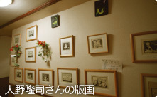 旅館のいたるところを飾る大野さんの版画の世界が、温泉のぬくもりと共に心を和ませてくれます。