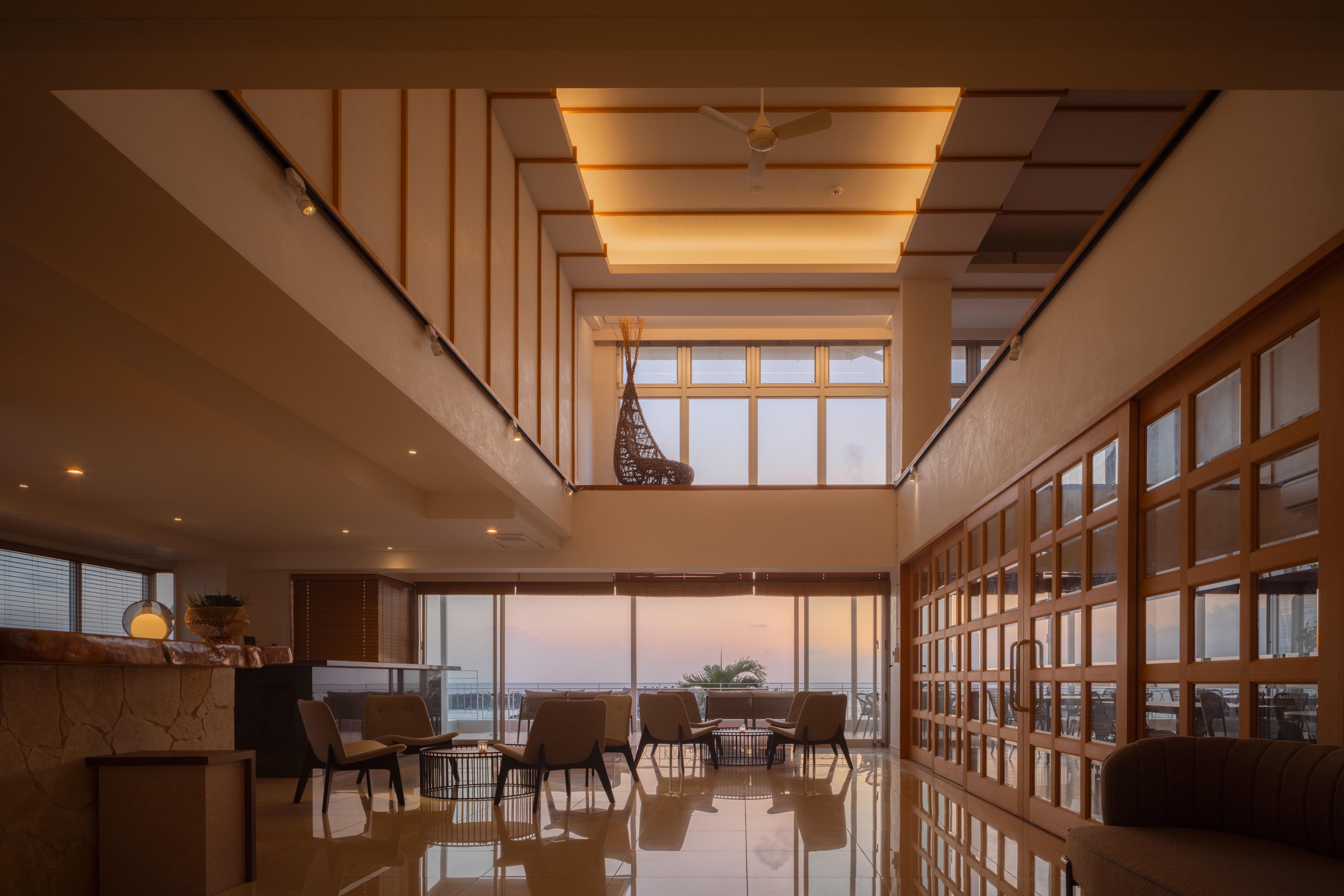 読谷の海と空…青の織りなす空間で寛ぐ。