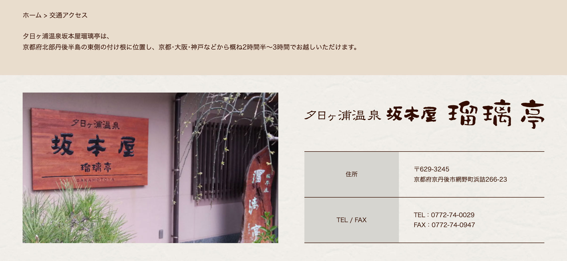 坂本屋 瑠璃亭 交通アクセス