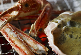 冬の城崎温泉の代名詞といえば“冬の味覚の王者”とも呼ばれる『松葉がに(“ずわいがに”の地元名)』。漁獲規制から毎年11月7日〜3月31日の期間だけしか味わえない大変貴重な食材で、その鮮度・身の甘み・味噌の味わい深さから大変人気があります。