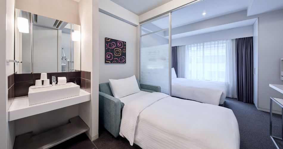 機能的なお部屋には、備え付けのソファーベットもあり最大3名様までご利用いただけます。(6歳までのお子様1名添い寝可能)コネクティングルーム(隣接の)のご用意もあり、ファミリーや友人同士のご旅行に最適です。