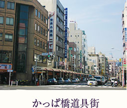 食器や漆器、製菓製パン機器他店舗家具や看板等の飲食店経営者用製品を取扱う専門店街。プロユース製品を一般客も購入でき、外国人には和包丁や食品サンプルが人気。