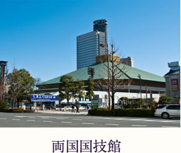 数々の名勝負が繰り広げられる大相撲の興行のための施設。両国界隈には多くの相撲部屋が立ち並ぶ。