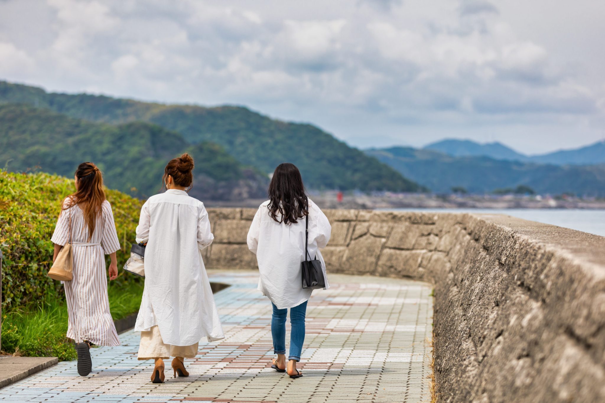 足湯で一休みしたら、竜の浜を散歩するのもオススメ。友達や家族と、潮風に吹かれながら、晴れた静かな砂浜を歩くのはとても心地が良いもの。