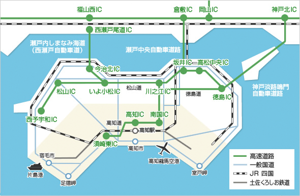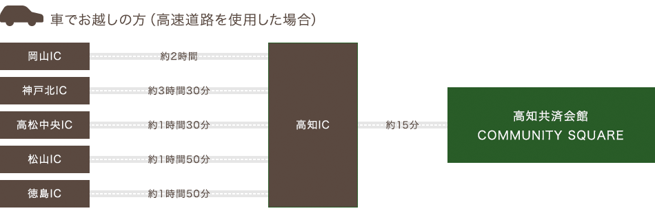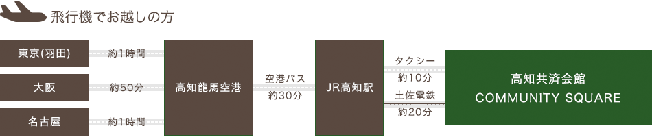 | 高知空港 | … | 車で約40分/空港バスで約50分 |