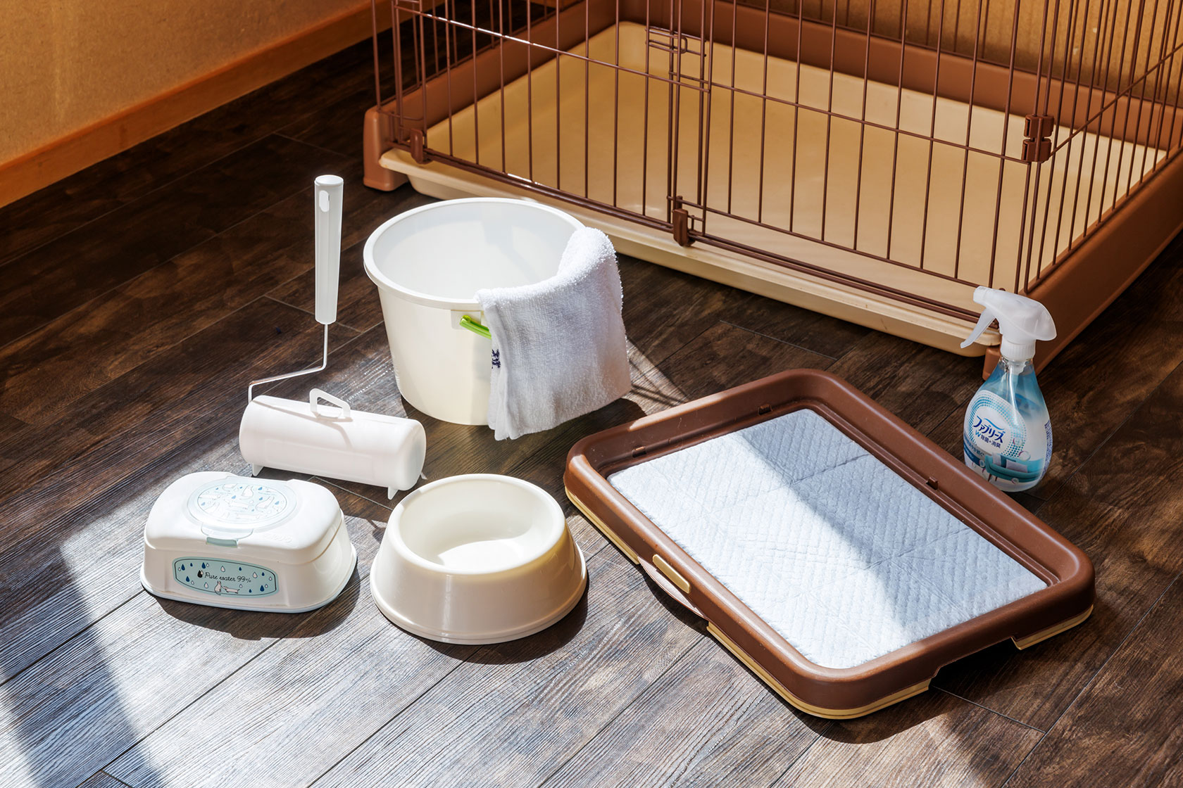 ケージ、フードボウル(食器)、トイレトレーなどを用意しております。また、各清掃用品も備え付けておりますのでご利用下さい。