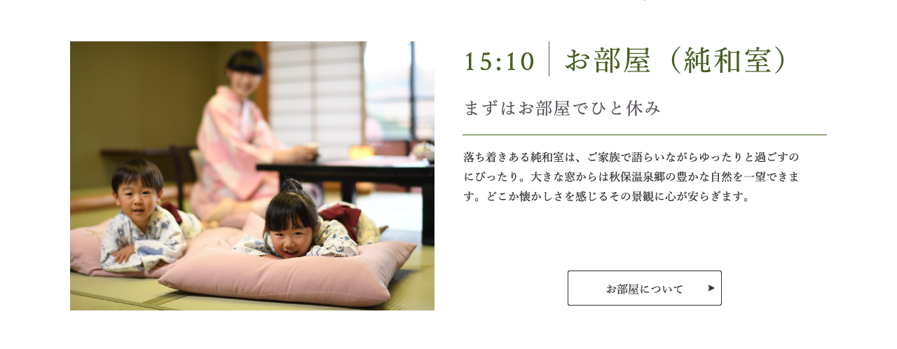 子連れ、年配者にやさしいホテルです。お風呂の畳の床は温かみがあり滑らず気に入りました。すぐ近くに観光地があり、...