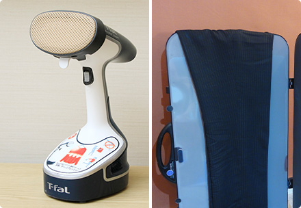 1日着たスーツもハンガーにかけたままスチームでサッと簡単シワ伸ばし。EVホールにあるズボンプレッサーもご自由にお使いください(共に台数限定)。