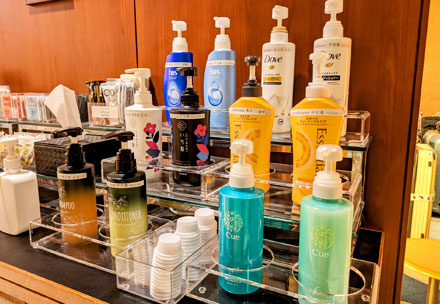 女性用化粧品、入浴剤からフェイスマスクまで、アメニティバイキングを存分にお楽しみ下さい。