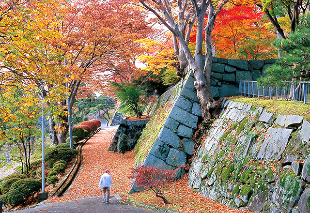 春は桜、秋は紅葉の名所として知られ、旧盛岡藩時代の堅固な石垣が残る、盛岡市中心部のシンボル。城跡沿いには中津川が流れる、盛岡まち歩きの中心地です。