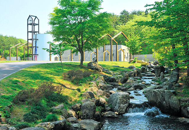 御所湖のほとりに佇む美術館。国内では珍しく、ポーランドやロシアなど東欧諸国の絵画を中心に所蔵。併設のカフェでの休憩もお楽しみください。