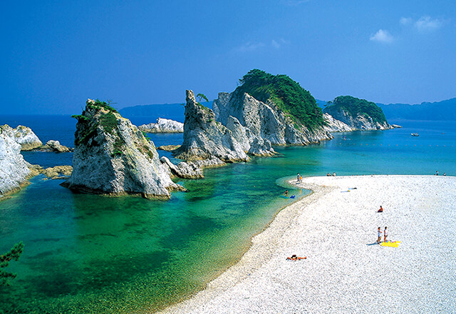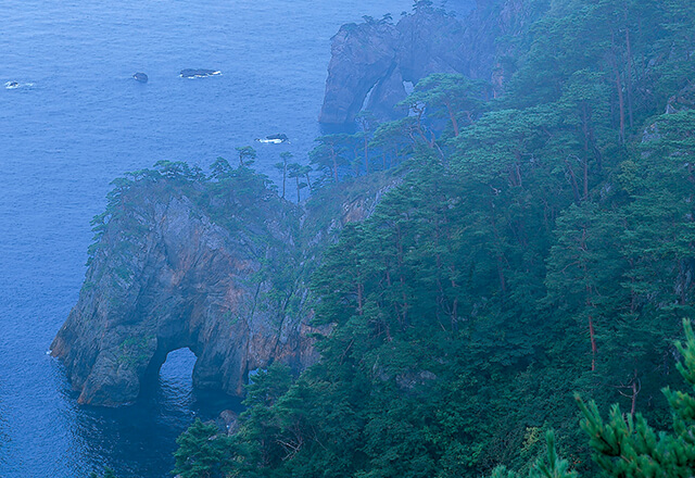 三陸復興国立公園内にあり、「さながら極楽浄土の如し」と歌われたことが由来の風光明媚な三陸の景勝地。散策や遊覧船、レストハウスでの食事などが楽しめます。