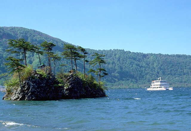 十和田八幡平国立公園を代表する景勝地。透明度の高さと全国三位の深さを誇るカルデラ湖で、遊覧船やカヌー体験、ネイチャーガイド散策などを楽しめます。