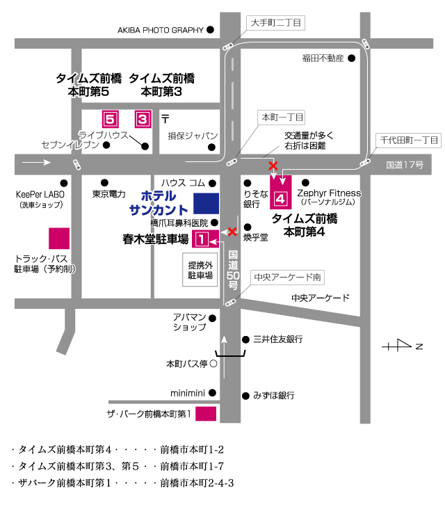 前橋ホテルサンカント 交通・アクセスマップ(駐車場案内)