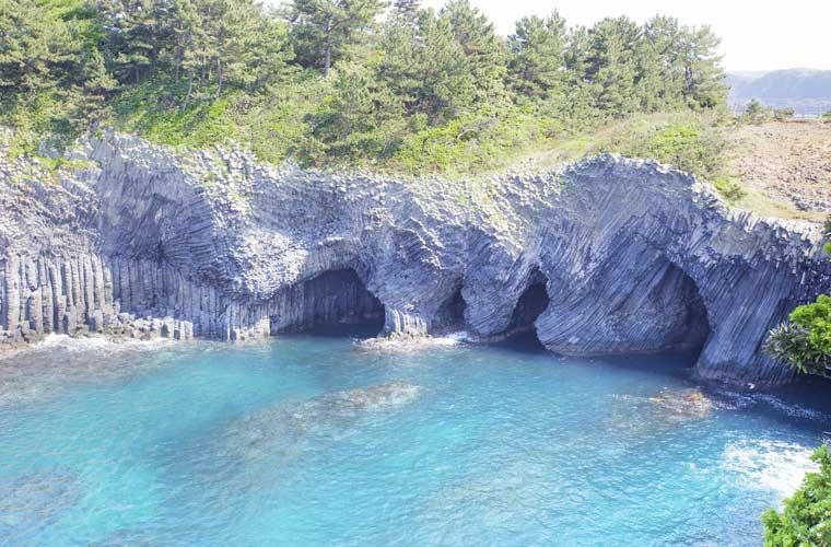 福岡県糸島市の海岸にある「芥屋(けや)の大門」は、波の浸食によって誕生した日本最大の玄武岩洞。玄界灘にそそり立つ岩の下部に、高さ64m、奥行90m、間口10mの洞窟があり、迫力ある景観を呈しています。洞窟は海に面しているため、芥屋漁港から出る遊覧船(3〜11月)に乗って、海の上から眺めるのがおすすめです。