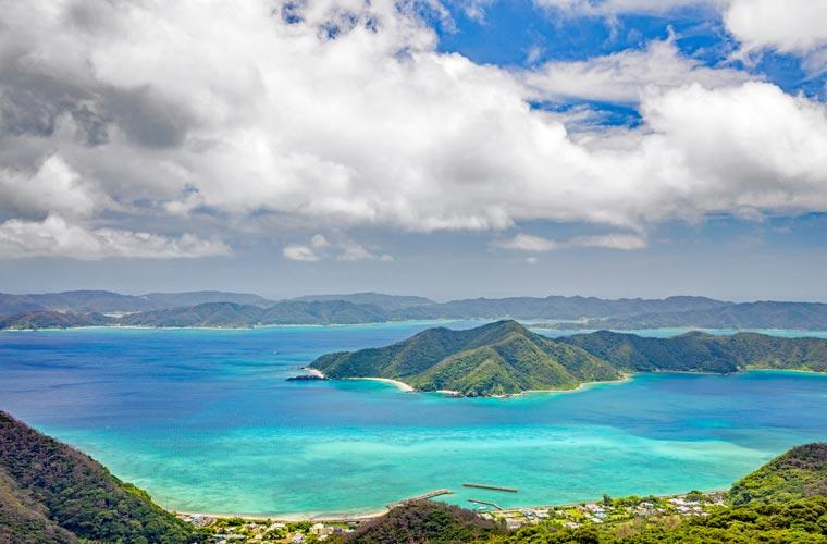 鹿児島県と沖縄県の中間に位置し、日本版「天国に一番近い島」と称される奄美大島は、2017年に国立公園として新たに指定された「奄美群島国立公園」に含まれています。奄美特有の植物や野鳥などの観察ができる奄美自然観察の森には二つの展望台があり、緑の山々と美しい龍郷湾を一望できます(2022年3月1日~8月31日まで休園)。