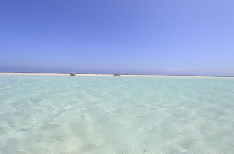 与論島には条件が揃ったときにだけ現れる「サンドバー」があります。沖合なのに浅瀬になり、ときには砂州が海面上に現れ、その数は日によって異なると言われています。透き通った美しい海に現れる白い砂浜はまさに絶景。
