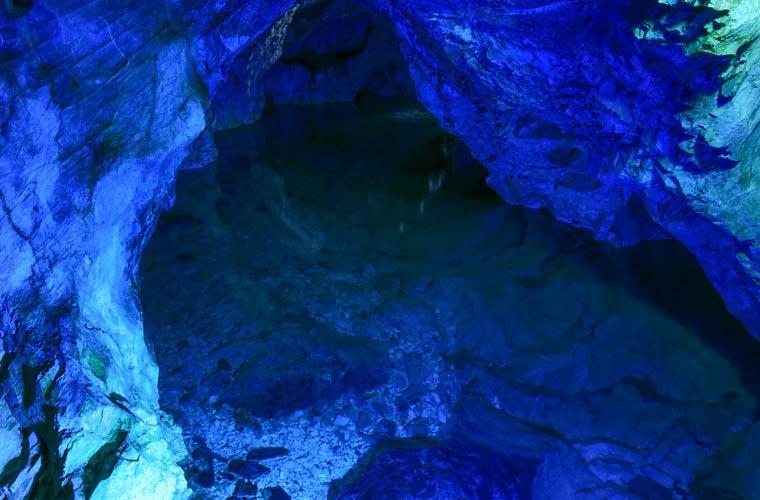 全長約1km、水深40mの世界でも珍しい日本最大規模の稲積(いなずみ)水中鍾乳洞。洞内には水中鍾乳石や珊瑚石、ベルホール、ヘリクタイトなどが数多くあり、その光景は幻想的です。