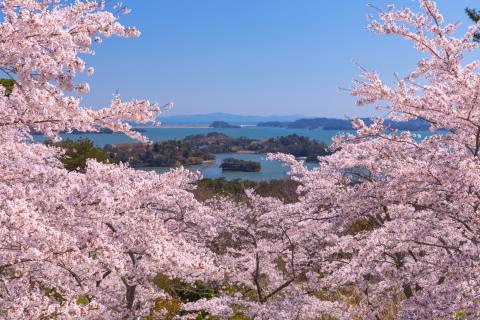 東北の桜の名所として知られる岩手県北上市の「北上展勝地(きたかみてんしょうち)」は、北上川沿い約2kmにわたって桜並木が続き、展勝地公園内には桜が約1万本あると言われています。