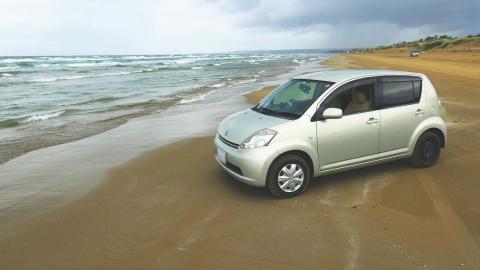 「千里浜なぎさドライブウェイ」では、乾いた砂地を走るとスタックする(車のタイヤが埋まってしまい、動けなくなる)可能性もあるので、十分気をつけてください。