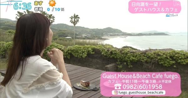【宮崎】日向灘を一望できる絶景カフェで、特別な時間を(5月6日放送) 宮崎 2025/06/10 日向市の素敵なカフェをご紹介!訪れたのは、日向市の海岸沿いにある「Guest House&Beach Cafe fuego.」。ラテン語で“炎”を意味するこのカフェは、太陽のような明るさと活気に満ちた空間が広がります。
