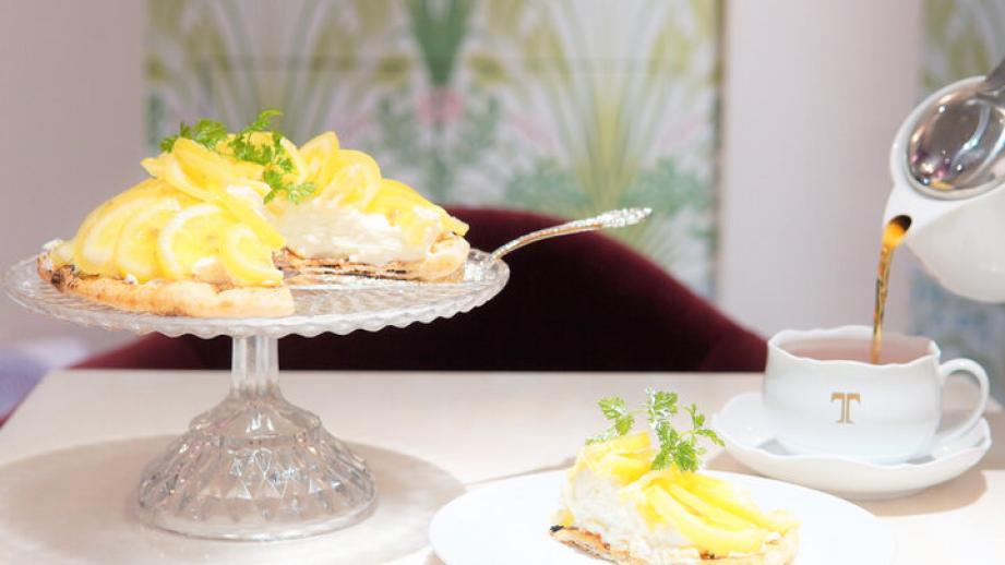 定番メニューのドルチェピッツァ「シチリア産有機レモン」は、レモン2.5個とリコッタチーズのとりあわせ。レモンを凍らせてから皮ごとハチミツ漬けにして使うので皮特有の渋みがなく想像以上にまろやかな味わいです。パリの5つ星ホテルで使われるベッジュマン&バートン社製の高級フレーバーティー紅茶と一緒にぜひ味わって。