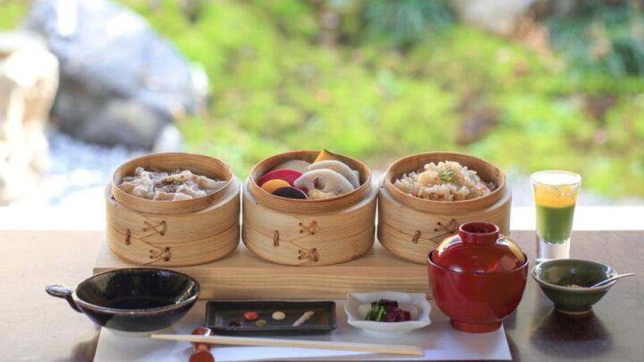 ランチメニューの「季節野菜のせいろごはん」は、炊き込みごはん、野菜の目利きに定評のある京都・西陣「ベジサラ舎」から仕入れる8種の野菜、ブランド豚「京都ぽーく」のそれぞれをミニせいろでじっくりと蒸し上げた彩り豊かでヘルシーなランチセット。数に限りがあるため予約しておくと安心です。