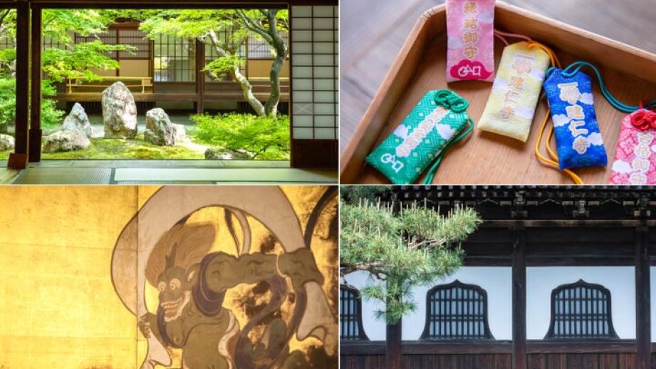 建仁寺は、臨済宗とお茶の文化を日本に伝えた栄西(ようさい)禅師によって鎌倉時代に開かれた、京都でもっとも古い禅寺です。観光客でにぎわう花街・祇園にありながら静けさが漂う境内は、ホッとひと息つきたいときに訪れたいとっておきの場所。端正な枯山水庭園、四季の彩に富むもみじとみずみずしい苔が共演する庭園、襖や天井、掛軸に描かれた新旧のアートなど、見どころのたくさんあるお寺です。