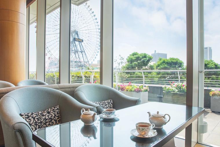1927年開業、山下公園と横浜港の目の前に佇む「ホテルニューグランド」。フロントロビーと本館をつなぐラウンジ「ラ・テラス」は、重厚な趣のインテリアを設えたラグジュアリーな空間。一枚絵のようなパティオを眺めながら、ゆったりとリラックスして過ごせます。